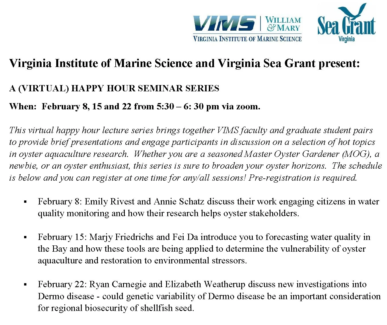 VIMS (Virtual) Happy Hour Seminar Series - Oyster Aquaculture Research